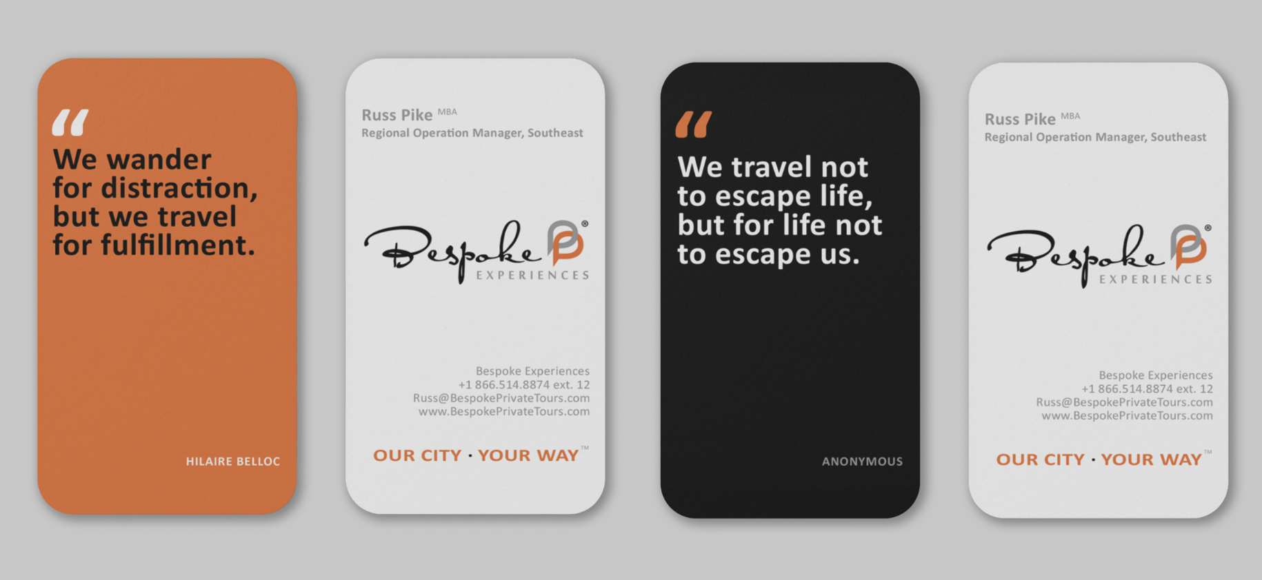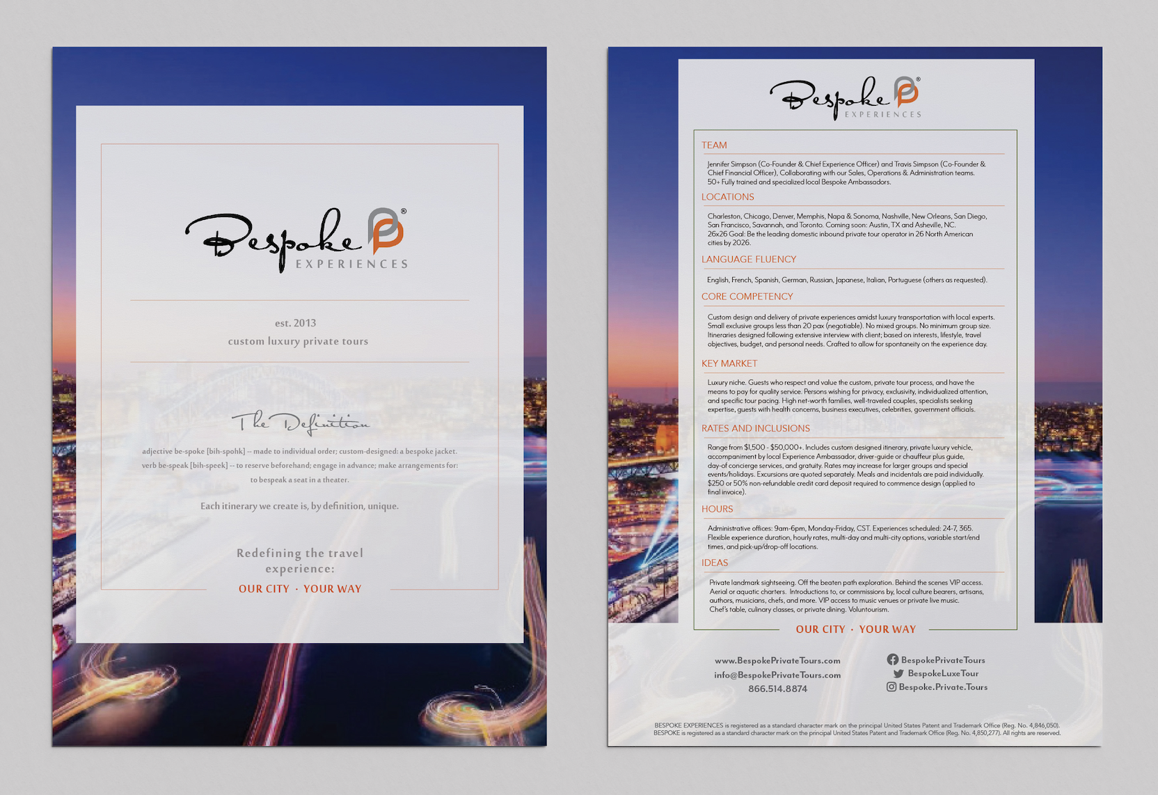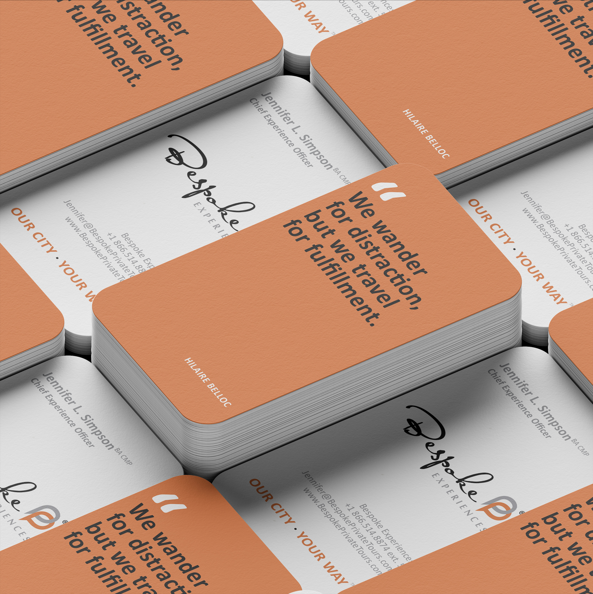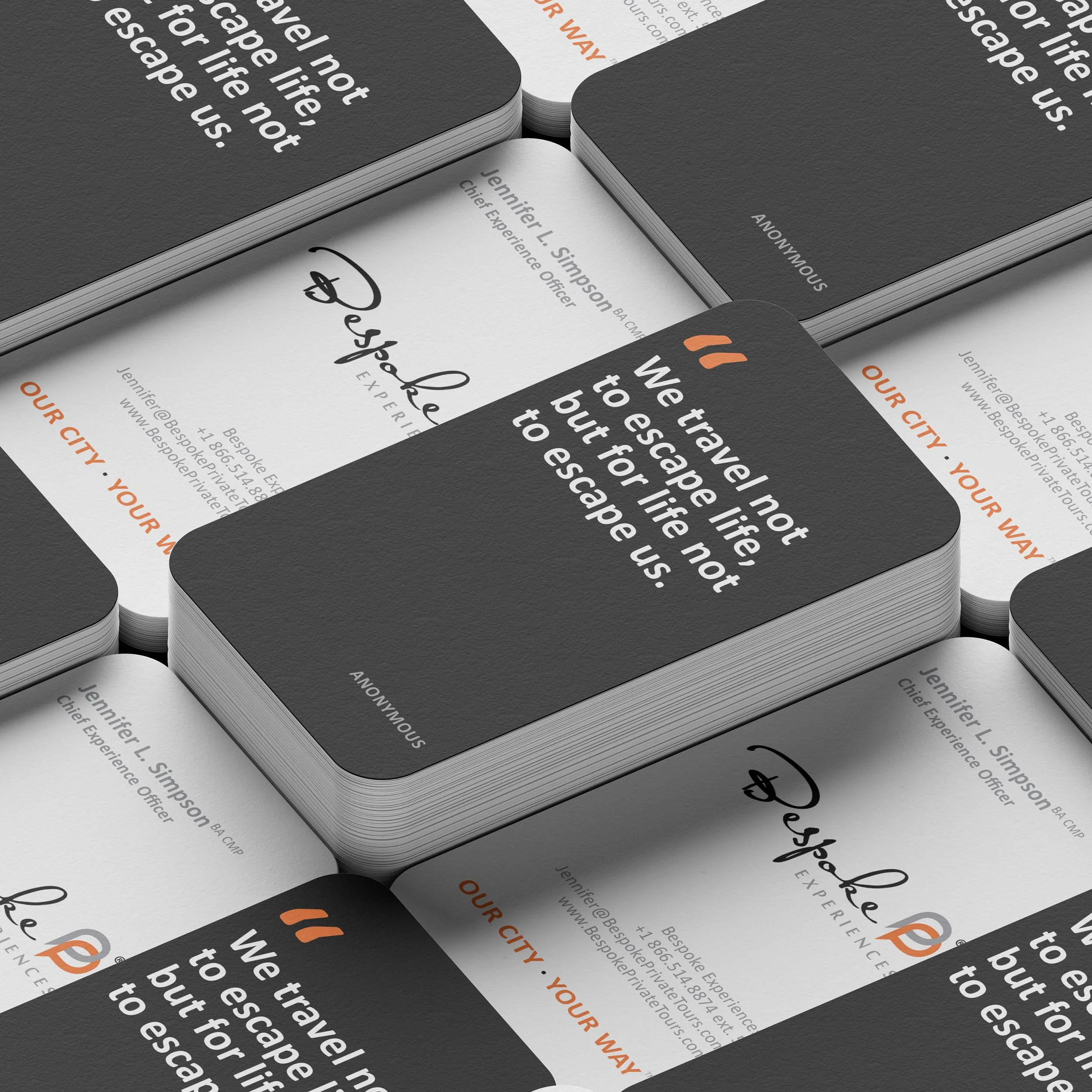 Project Brief: Bespoke Experiences engaged me to design a suite of branded business materials that enhance their professional presence. This included internal business documents, business cards, custom patterns, and elegantly designed travel itineraries—all crafted to maintain consistency with their established brand identity and luxury positioning.